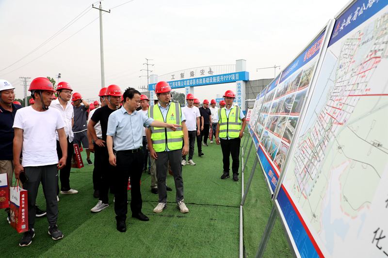 期間,還現場觀摩了霍邱PPP項目樣板工程,項目部圍繞質量安全管控措施、施工工藝、建設管理亮點等方面進行了詳細介紹。