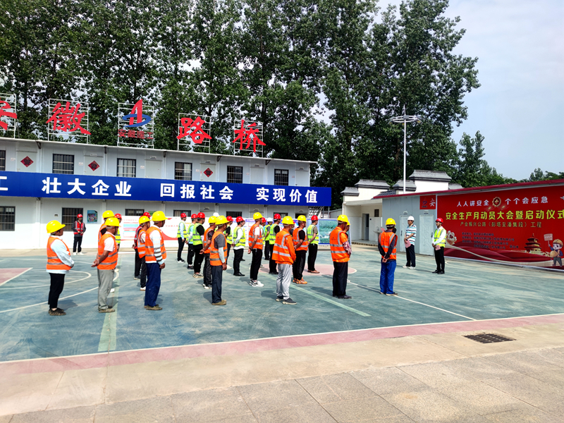 項(xiàng)目部堅(jiān)持一手抓安全、一手抓生產(chǎn),以“兩不耽誤、兩相促進(jìn)”為宗旨,加大宣傳力度,力爭實(shí)現(xiàn)“1+1>2”的效果。6月1日,項(xiàng)目部聯(lián)合霍邱縣交通局舉行了安全宣誓暨全國安全月活動啟動儀式,參觀安全月主題圖片展、學(xué)習(xí)安全生產(chǎn)相關(guān)知識特別是安全生產(chǎn)“八安八險”等內(nèi)容,監(jiān)理單位、項(xiàng)目管理人員、勞務(wù)隊(duì)伍代表等30余人還進(jìn)行了安全生產(chǎn)集體宣誓。5月,項(xiàng)目部組織召開勞動競賽啟動儀式,結(jié)合項(xiàng)目進(jìn)度制定了競賽活動方案并及時宣貫、展開討論。同時,在項(xiàng)目部及施工現(xiàn)場醒目位置懸掛橫幅23條,在公告欄張貼各班組施工進(jìn)度完成情況并動態(tài)更新,營造勞動競賽濃厚氛圍。設(shè)置安全圍擋及安全警示標(biāo)牌,保證進(jìn)度的同時落實(shí)安全制度。