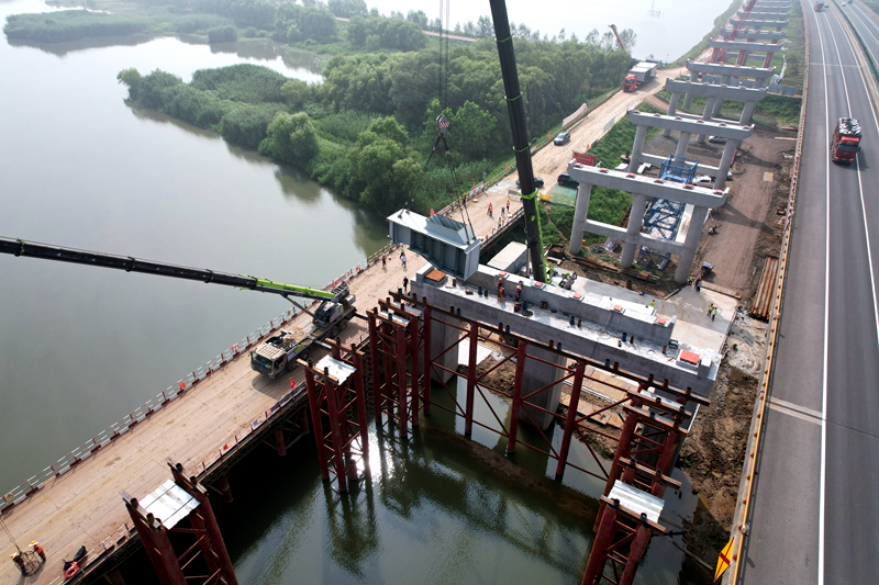 名媒聚焦|蚌埠日報:G36寧洛高速蚌明改擴建01標項目——首片鋼箱梁順利架設