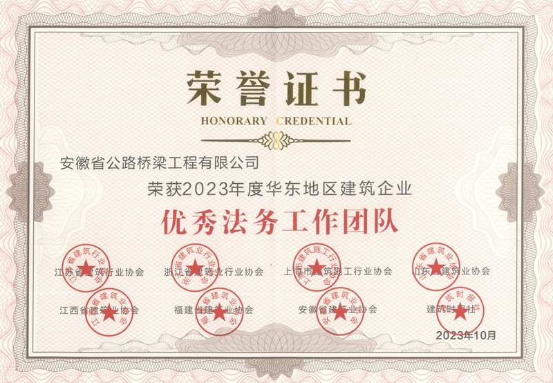 10月28日,由安徽省建筑業協會、江蘇省建筑業協會、浙江省建筑業協會等七家單位聯合主辦的第八屆華東地區建筑企業法務工作經驗交流會在江西省九江市舉行。公司榮獲2023年度華東地區建筑企業“優秀法務工作團隊”稱號,并接受表彰。