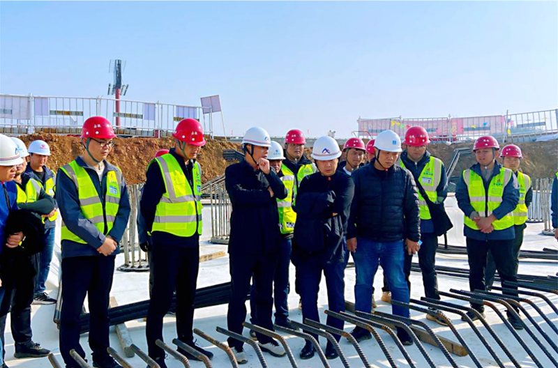 11月28日,安徽民航機場集團總經理助理、合肥新橋機場改擴建工程建設指揮部副指揮長楊永勝到公司承建的綜合交通中心項目調研。