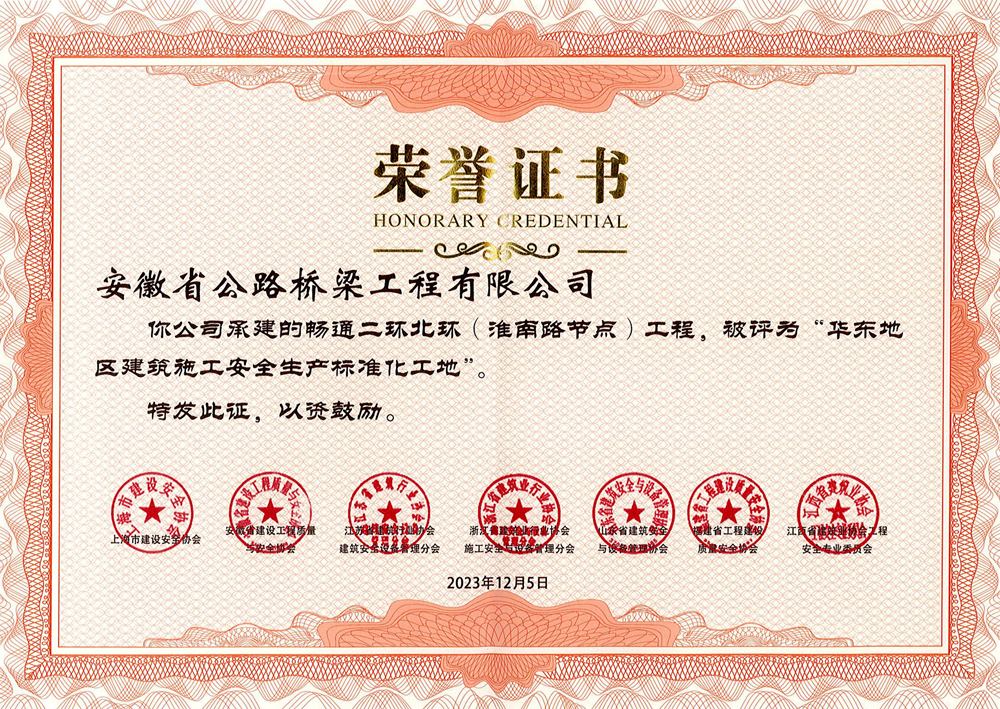 近日,華東地區建筑安全聯誼會公布2023年度華東地區建筑施工安全生產標準化工地名單,公司承建的暢通二環北環(淮南路節點)工程項目光榮上榜。