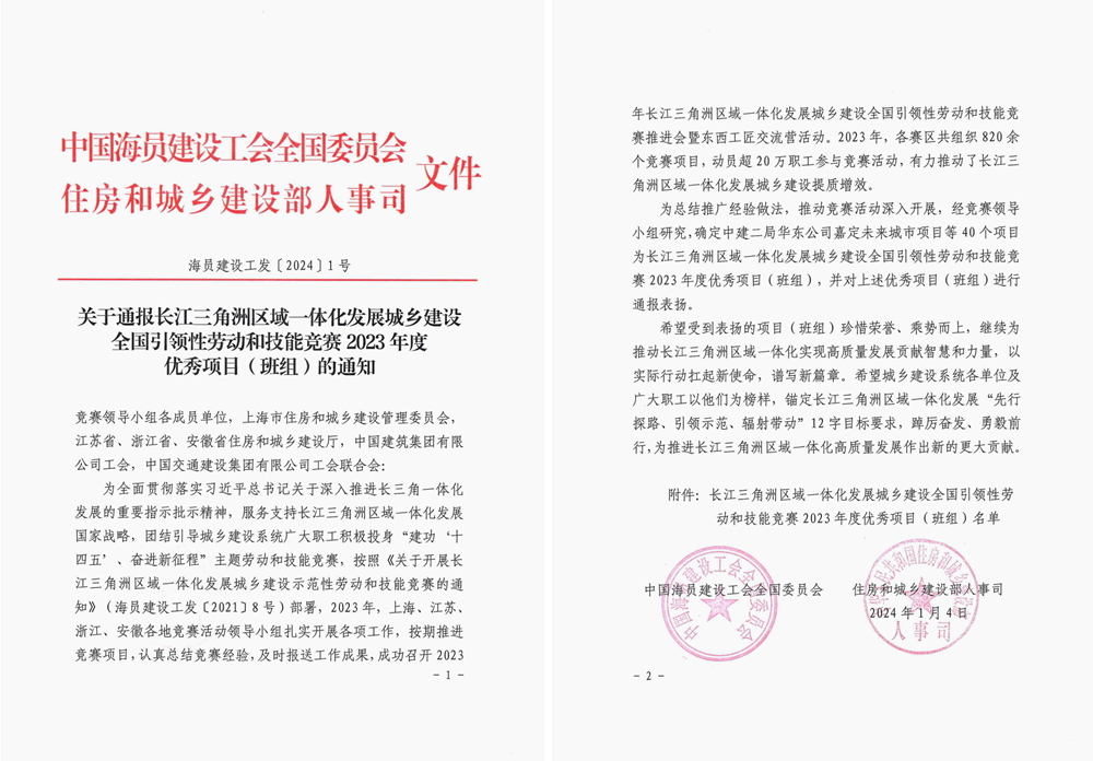 近日,中國海員建設工會和住建部人事司聯合公布長江三角洲區域一體化發展城鄉建設全國引領性勞動和技能競賽2023年度優秀項目評選結果,公司桃花科創產業園EPC項目榜上有名。
