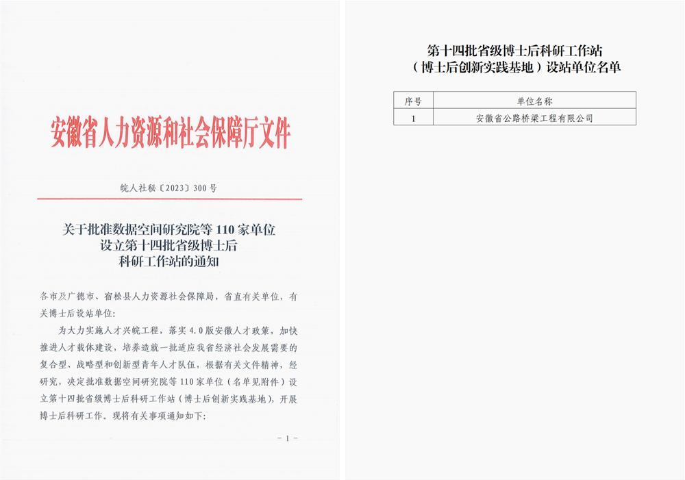 近日,安徽省人力資源和社會保障廳發布了《關于批準數據空間研究院等110家單位設立第十四批省級博士后科研工作站的通知》,公司成功獲批設立省級博士后科研工作站。