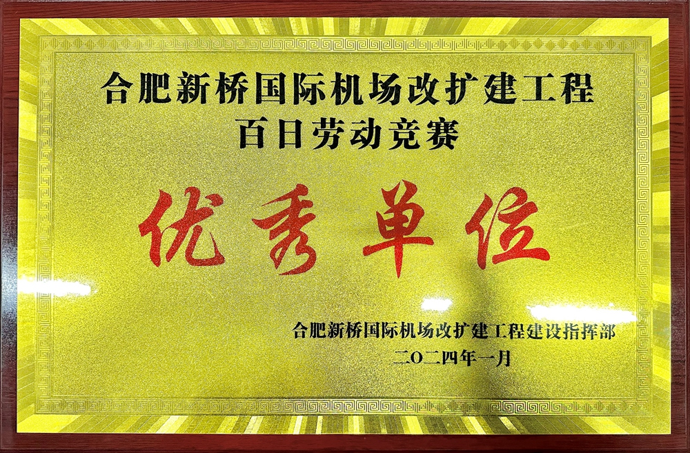 近日,從合肥新橋機場改擴建工程項目指揮部傳來喜訊,公司承建的合肥新橋國際機場綜合交通中心項目榮獲“合肥新橋國際機場改擴建工程百日勞動競賽優秀單位”,公司黨委委員、副總經理韋秀剛代表公司領獎。
