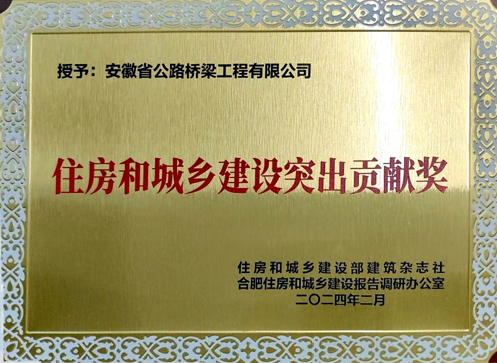 近日,住房和城鄉建設部建筑雜志社、合肥住房和城鄉建設局建設報告調研辦公室聯合頒發“住房和城鄉建設突出貢獻獎”,表彰在合肥大建設中作出突出貢獻的單位,公司榮獲殊榮。