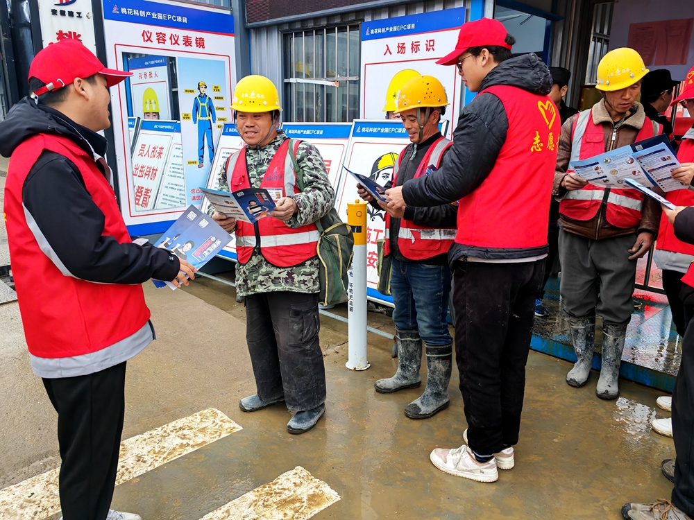 桃花科創產業園項目團支部走進工友群體,開展普法志愿宣傳宣講活動,旨在提升工友們的法律意識。