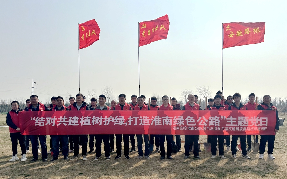 鳳毛快速通道、淮桐路基4標項目與淮南交控鳳毛項目辦、淮南公路、鳳毛總監辦、毛集交通局,在毛集實驗區趙臺孜村苗圃聯合開展“結對共建植樹護綠,打造淮南綠色公路”主題黨日活動,栽樹植綠,全面提升路域生態環境質量。