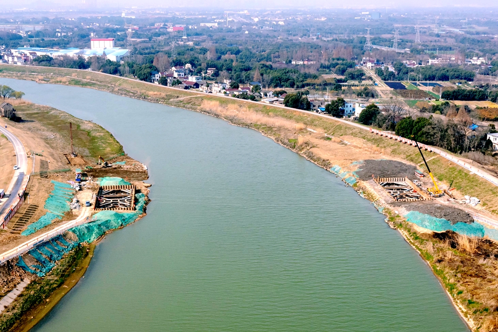 碧綠的青弋江畔,S334峨山路東延伸新建二期工程青弋江特大橋施工現場機械轟鳴、人影穿梭,正在緊張有序地進行大橋主墩承臺施工。為確保在青弋江汛期前實現主墩出水,項目乘著春節“不打烊”的干勁勢頭,倒排工期、科學部署,爭分奪秒搶抓進度。2月底已完成主墩鋼圍堰施工,3月份正式進入了主墩承臺施工階段,為下一步棧橋施工做好充足準備。