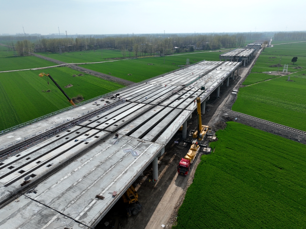 2024年以來,該項目搶抓有利天氣,以“起步即沖刺、開工即決戰”的姿態率先實現復工復產。積極克服不利因素,全力以赴加快推進工程建設,順利完成現澆箱梁澆筑作業,路基填筑、主線橋及支線上跨橋多工點實現“同步”作業,進度在全線保持領先。