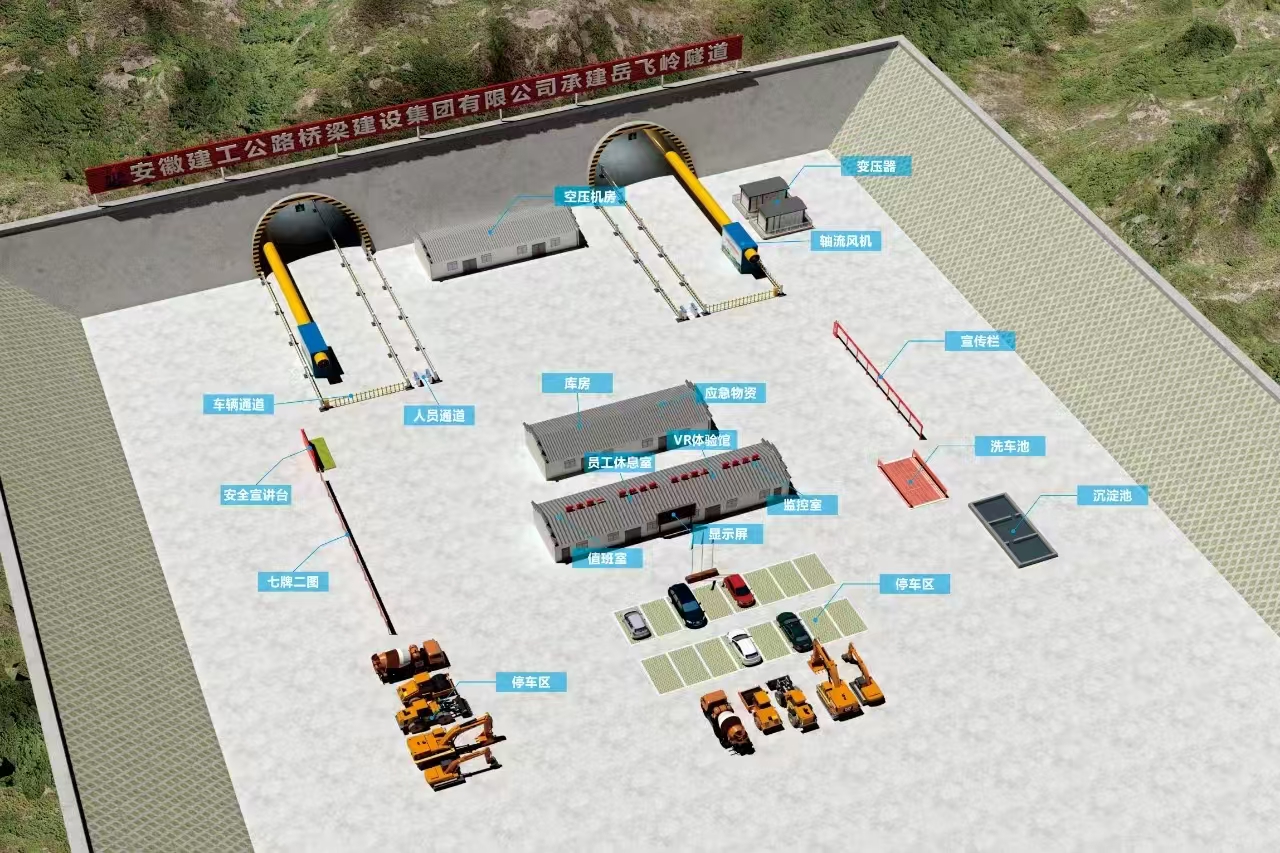 岳飛嶺隧道為全線關鍵控制性工程之一,右洞全長2770米,左洞全長2795米,設計為雙向六車道分離式隧道。