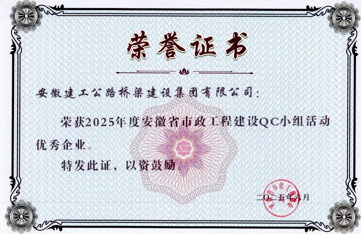 卓越創新 | 公司榮獲“2025年度安徽省市政工程建設QC小組活動優秀企業”稱號