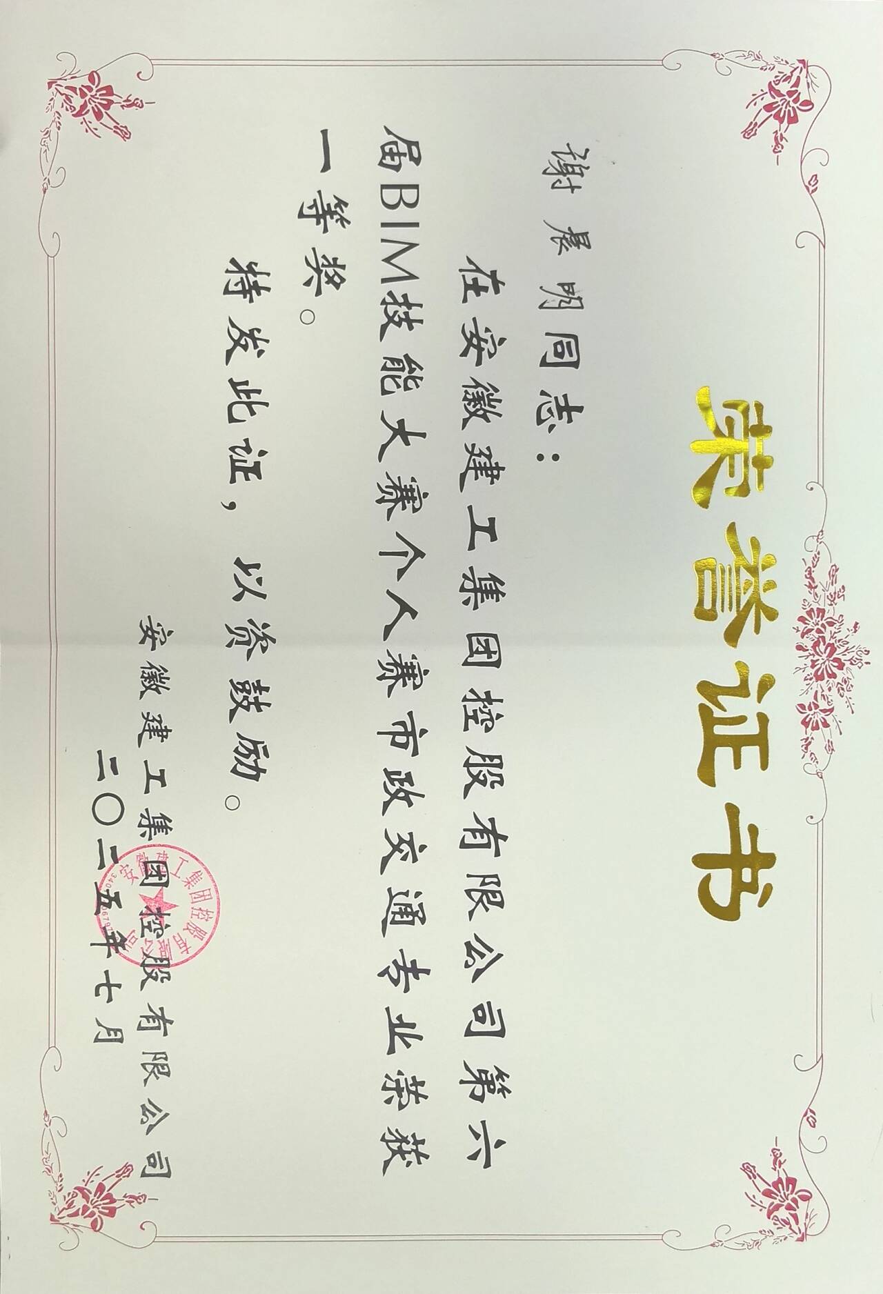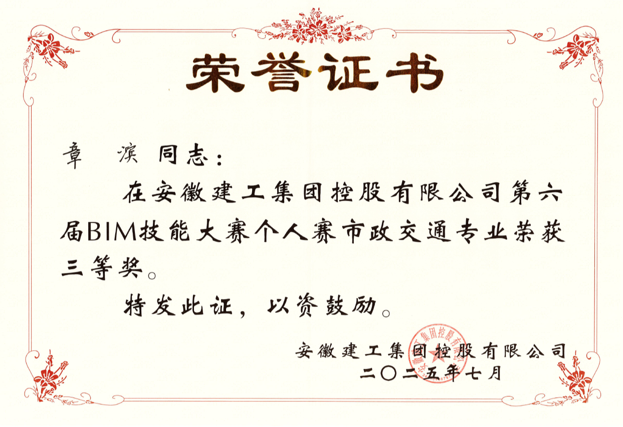 公司參賽隊伍由市政公司謝晨明、合肥分公司張安強和公路二公司章濱三人組成,其中謝晨明榮獲市政交通專業一等獎,張安強榮獲建筑機電專業一等獎,章濱榮獲市政交通專業三等獎。
