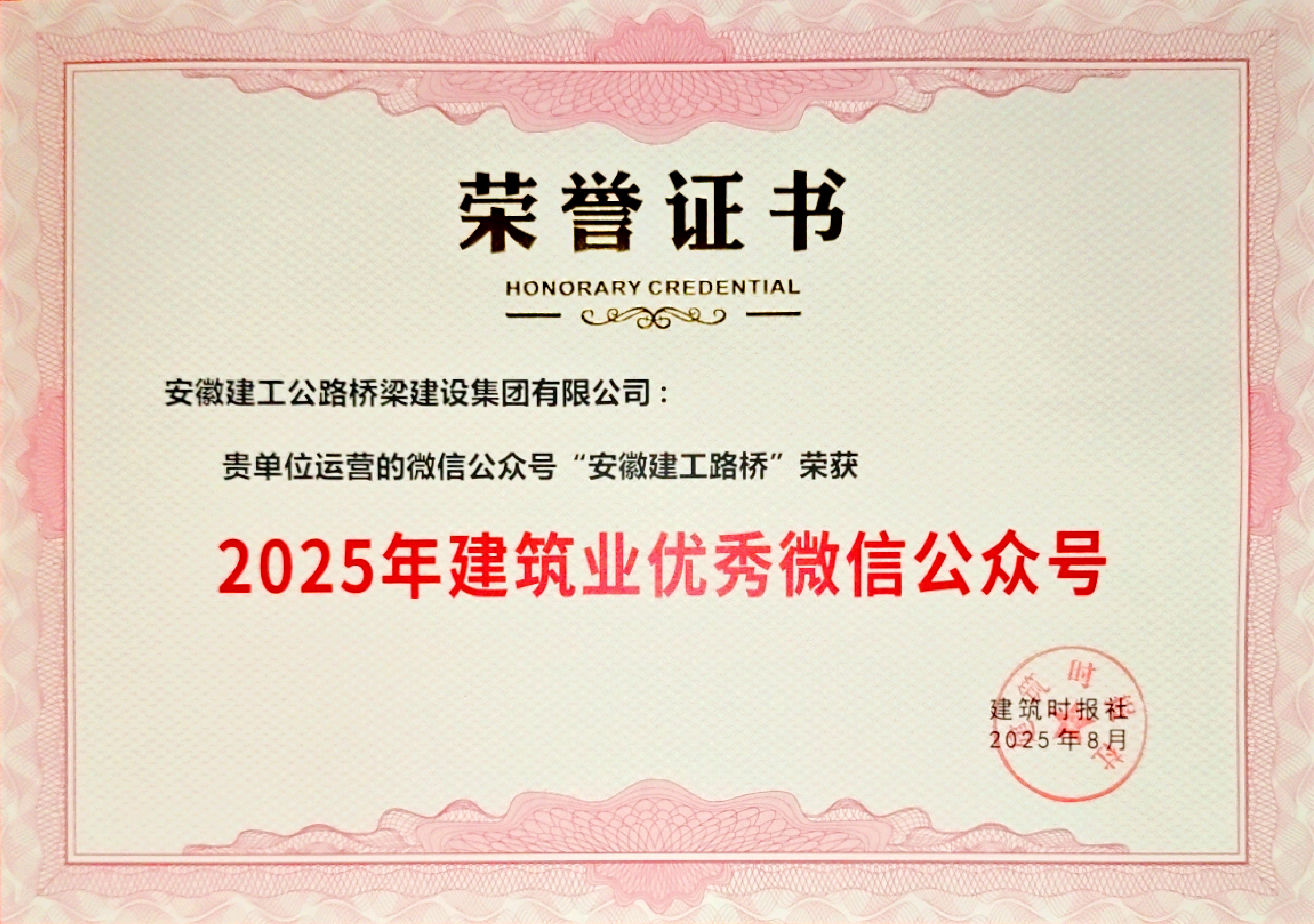 8月7日,2025年建筑業優秀微信公眾號名單公布,公司微信公眾號“安徽建工路橋”再次獲此殊榮,連續4年登榜。
