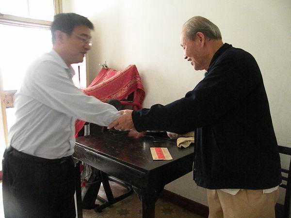 三節前公司領導到困難老職工家慰問 發布時間:2009年09月28日 來源:公司黨辦 發布人: 作者: 瀏覽:4851次 公司黨委積極開展“我們的節日·中秋”主題活動,組織在國慶、中秋、重陽三節前夕看望慰問困難老職工,讓他們共享改革開放的成果,為新中國成立60周年營造一個安定、文明、和諧的社會環境。9月21日至24日,公司總經理、黨委副書記汪衛東、副總經理孫學軍等領導先后看望慰問困難老職工代表,給他們送去了節日的祝福,并帶去慰問金。