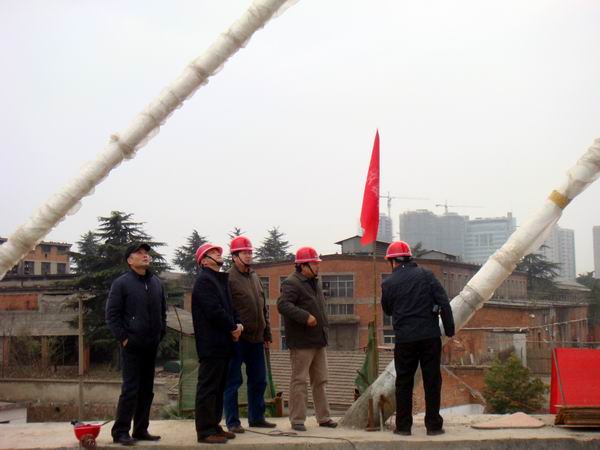戴總一行參觀了大橋南岸主橋施工現場。在聽取了項目部江仲明經理對前期工作和當前施工進展情況的匯報后,戴總對我部工作給予了高度評價,同時提出了更高的要求,希望我部繼續努力,再上新臺階。隨后,戴總一行還登上了主橋橋面,實地察看了正在緊張進行的主橋前支點掛藍施工,親切慰問了冒著嚴寒戰斗在一線的現場施工工人和技術人員,并就主橋完成后如何拆除前支點掛藍提出了指導性的方案。