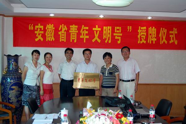 7月27日下午,在公司三樓會議室隆重舉行了“青年文明號”授牌儀式,省建設廳文明辦王一建主任向獲得省級“青年文明號”的六安淠望路大橋項目團支部授牌。授牌儀式由集團公司團委書記邢應梅主持,省建設廳文明辦李玲副主任、公司黨委書記陳光磊出席授牌儀式。