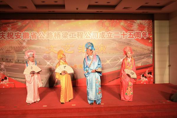 由環通公司表演的鼓樂《榮耀之光》將匯演氣氛充分展開,在激昂的鼓聲中全體員工看到了過去的榮耀,同時也看到了未來安徽路橋的榮耀之光。隨后的路面公司男聲獨唱《想家的時候》表達了路橋人舍小家為大家的“路橋情”。現代舞《nobody》將歡快的舞曲、嫵媚動感的舞蹈結合在一起,展示出路橋青年人可愛的一面。四分公司表演的三句半·路橋雜談——《四大才子》,不時讓觀眾捧腹大笑。男聲組合唱《80、90的歌》用美妙的歌聲征服了觀眾。詩朗誦《安徽路橋人之歌》結合湖北宜巴項目抗洪救災的事跡,歌頌了路橋人勤奮苦干的風采。公司機關的美麗姑娘攜手獻上了神秘充滿愛的《印度舞》,將觀眾帶入美妙高雅的民族舞蹈藝術殿堂,體現高尚的藝術品位和追求。橋梁公司年輕人表演了小品《路橋人的節目》,展示了路橋員工如何開動腦筋,為文藝匯演獻上最好的節目……