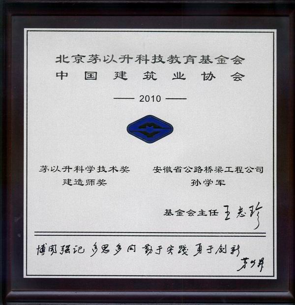 公司副總經理孫學軍榮獲茅以升科學技術獎