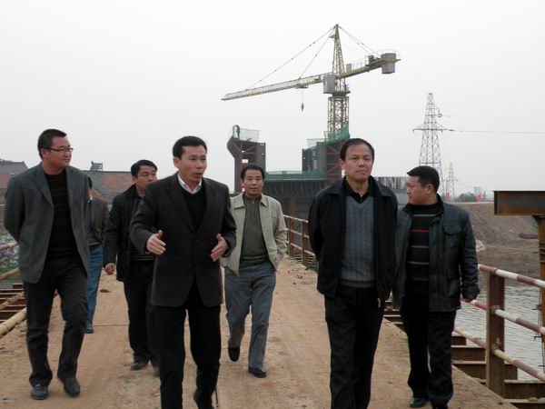 下午5點,潘主席一行經過3個多小時的車程后來到項目施工現場,先后視察了兩個標段的建設工地和預制梁場。視察過程中,潘主席不時的對施工進展情況和技術要點進行詳細的詢問,對公司精湛的施工技術和良好的管理表示敬佩。