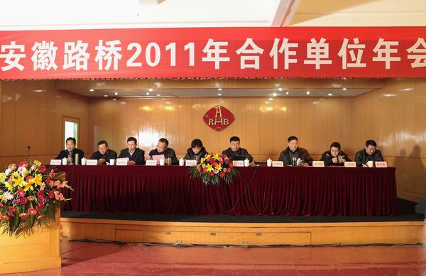 在充滿和諧融洽氛圍的年會上,項目管理部介紹了公司2011年施工總體情況及公司合作單位管理情況。來自廬江縣東俊市政服務(wù)有限公司、安徽恒泰建設(shè)發(fā)展有限公司、桐城市瑞通建筑勞務(wù)有限公司、蕪湖市鑫洋榮盛建筑工程勞務(wù)有限公司、安徽友通路橋建設(shè)工程勞務(wù)有限公司、合肥江淮混凝土制品有限責(zé)任公司、安徽恒昊商貿(mào)有限公司、桐城市雙聯(lián)建筑勞務(wù)有限公司8家優(yōu)秀合作單位代表相繼上臺發(fā)言,感謝公司對年會的精心安排和熱情接待,指出多年來與公司密切合作使自身不斷發(fā)展壯大,希望能繼續(xù)與公司深化合作,建立長期的良好合作關(guān)系。