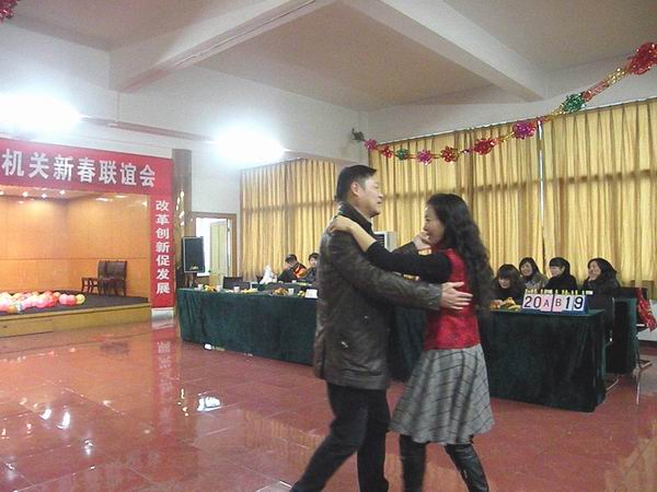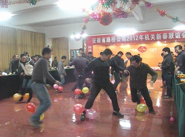 四支代表隊分別在綁腳聯體賽跑、集體造句、搶椅子、瞎子擊鼓、辯真假、踩氣球等游戲環節展開了激烈競爭,現場掌聲連連,笑聲、歡呼聲此起彼伏,氣氛十分熱烈。最終飛龍代表隊在最后一個游戲環節力壓奔馳隊獲得一等獎。在游戲中間的節目表演環節,各隊多才多藝的隊員們爭相登臺表演,有人唱歌、有人舞蹈、還有人一秀太極拳,競賽的節目使聯歡會高潮迭起、亮點紛呈。聯歡會上還安排了讓人激動的抽獎活動。