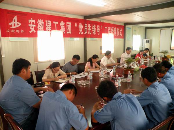 10點左右,李書記、牛書記一行來到項目會議室舉行“黨員先鋒號工程”授牌儀式。會上,公司、國內公司及市政分公司分別就爭創“黨員先鋒號工程”情況做了具體匯報。會上,李書記和牛書記分別作了重要講話。李書記就項目“黨員先鋒號工程”創建情況談了三點感受:一是創建工作務實,內容具體;二是創建工作主題突出,有自己的特色;三是創建隊伍有生機、有朝氣。就“黨員先鋒號工程”創建下步工作,李書記提出三點要求:一是創建工作要圍繞生產中心進行;二是要拓寬創建活動范圍,要逐步將活動延伸到合作隊伍和農民工中;三是創建工作要建立長效機制。牛書記指出公司市政項目“黨員先鋒號工程”創建工作開展的很好,很有特色,對項目在人文關懷方面的工作給予了充分肯定,對項目員工表現出的朝氣表示欣賞,并對安全生產、職工生活等方面工作做提出了具體要求。