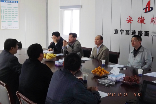 在該項目召開的總結交流會上,趙總一行聽取了該項目負責人關于前期工作進展總體情況及標準化建設成果的匯報。對于宣寧路面02標項目選址、場地規劃建設、文明施工以及企業文化建設等方面工作,趙總一行表示了肯定,同時對項目下步重點工作提出了要求和期望。