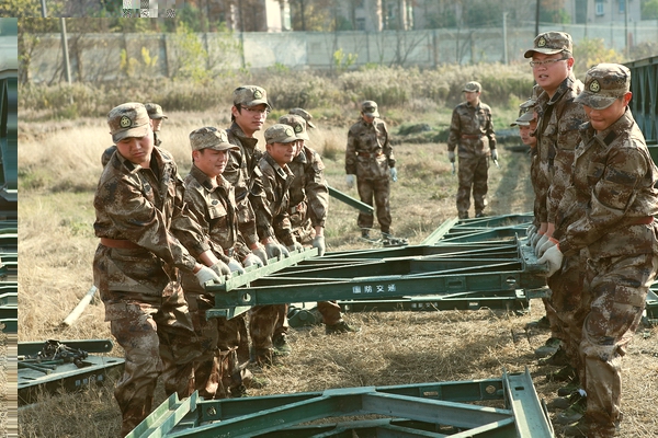 下午,在合肥警備區(qū)教導(dǎo)隊(duì)訓(xùn)練場(chǎng),紅旗招展,彩球飄揚(yáng)。公司從各單位、各項(xiàng)目抽調(diào)的50名隊(duì)員經(jīng)過(guò)為期一周的軍事化訓(xùn)練,精神抖擻、整裝待發(fā)。15:00時(shí),演示活動(dòng)正式開(kāi)始。隨著梅廳長(zhǎng)一聲令下,隊(duì)員們高舉“安徽省公路工程保障大隊(duì)”旗幟,齊喊口號(hào),跑步進(jìn)入現(xiàn)場(chǎng),開(kāi)始架設(shè)。在架設(shè)的同時(shí),進(jìn)行了現(xiàn)場(chǎng)同期聲解說(shuō)。短短30分鐘內(nèi),隊(duì)員們分工明確,技術(shù)熟練,配合默契。在沒(méi)有機(jī)械設(shè)備的情況下,依靠人工肩扛手抬,迅速完成了桁架、橋面板等搭設(shè),將鋼橋推過(guò)河,隨后三輛炮車(chē)緩緩?fù)ㄟ^(guò),進(jìn)行裝備通載檢驗(yàn)。至此,戰(zhàn)備鋼橋架設(shè)演示圓滿完成。演示活動(dòng)結(jié)束后,領(lǐng)導(dǎo)們上橋檢閱,親切地接見(jiàn)、慰問(wèn)了參演隊(duì)員,并合影留戀。