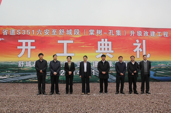 11月6日上午,省道S351六安至舒城段(棠樹至孔集)升級改建工程開工典禮于六安孔集鎮隆重舉行,舒城縣四大領導班子成員、各職能部門及沿線鄉鎮主要負責人,建工集團副總經理王元曦,公司董事長孫學軍等出席了開工典禮。