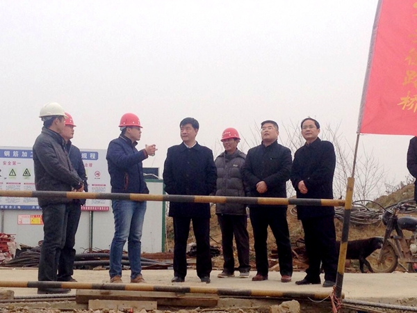 1月12日下午,六安市委書記孫云飛在該市重點局局長王勇等人的陪同下,蒞臨公司承建的淠河總干渠橋項目視察。