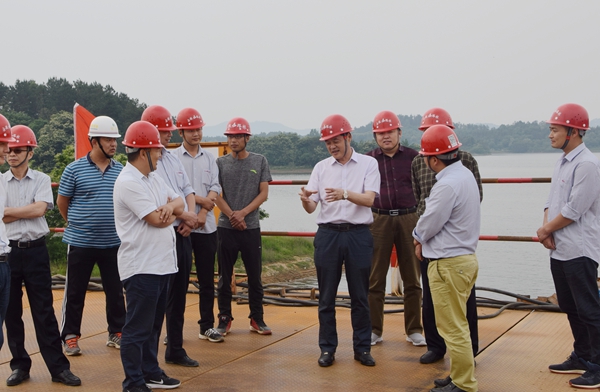 5月24日下午,集團公司副總經理戴良軍到萬佛湖02標項目檢查指導工作,集團總工辦副主任崔林釗、公司副總經理、總工程師彭申凱,副總經理任杰陪同。