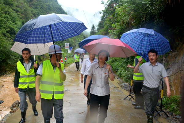 6月25日上午,宣城市長張冬云來到S456績溪項目施工現(xiàn)場察看汛情和現(xiàn)場搶險情況。績溪縣委書記葛建榮、縣長黃德泉等領(lǐng)導(dǎo)陪同。
