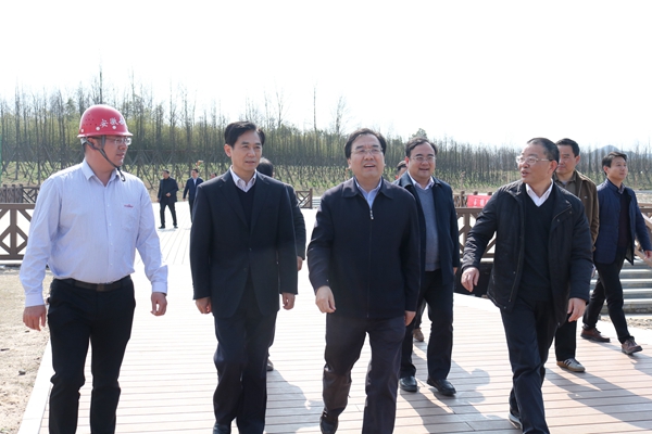 信長星一行深入江心洲園區實地查看工程建設情況,詳細了解工程規劃、面積、投資等情況,對苗木種植養護及濕地建設提出了指導性意見。信長星強調,在施工過程中一定要進一步加大對濕地生態系統的保護,提高生物多樣性。