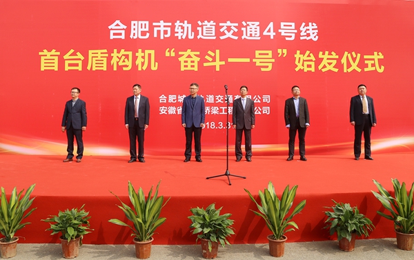 陽(yáng)春三月生機(jī)勃發(fā),奮斗一號(hào)掘進(jìn)始發(fā)。3月31日上午,公司首臺(tái)盾構(gòu)機(jī)“奮斗一號(hào)”在軌道交通4號(hào)線1標(biāo)長(zhǎng)寧大道站順利始發(fā),標(biāo)志著合肥軌道交通4號(hào)線正式進(jìn)入盾構(gòu)施工階段。合肥市軌道公司總經(jīng)理羅斌,安徽建工集團(tuán)副總經(jīng)理王厚良,公司董事長(zhǎng)、黨委書(shū)記、總經(jīng)理孫學(xué)軍等領(lǐng)導(dǎo)和參建單位代表出席始發(fā)儀式。10時(shí)16分,羅斌宣布“奮斗一號(hào)”正式始發(fā)。儀式結(jié)束后,與會(huì)領(lǐng)導(dǎo)與專家深入始發(fā)現(xiàn)場(chǎng)、管片存放區(qū)檢查指導(dǎo)。