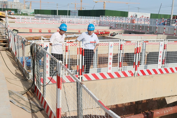 錢總先后來到長寧大道站、創新大道站施工現場,實地調研指導工程施工,并詳細聽取了項目負責人對工程進度、安全質量管控、盾構掘進施工等情況的工作匯報。錢總強調,要提前謀劃,精心組織,控制好節點工期,充分發揮主觀能動性,安全優質高效地推進項目建設。