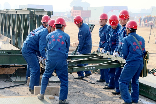 演練以“公路交通綜合應急能力比武”為主題,省公路工程保障大隊參與了塌方體清理、圓管涵鋪設和裝備式鋼橋架設等三個科目演練。隨著信號彈發射,全體參賽人員迅速進入狀態,大家配合默契、動作規范,高效率完成了演練任務。最終,安徽省代表隊在參賽六支隊伍中率先完成比賽,并獲得團體三等獎、圓管涵鋪設單科第一名,出色表現得到了主辦方及省交通運輸廳領導的充分肯定。
