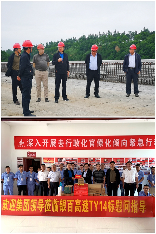7月21日,建工控股黨委副書記、總經理劉家靜一行到銀百高速TY14標調研指導工作,并進行“送清涼”慰問。