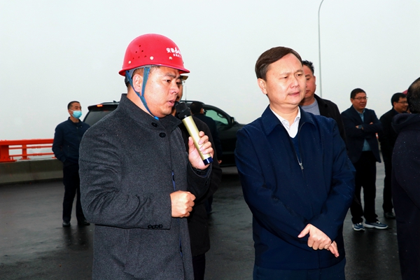 石迎軍實地查看了工程建設情況,對黃河特大橋建設以來的施工重難點、新技術應用情況進行了詳細了解,對該項目建設成果給予充分肯定。他指出,黃河特大橋是濟洛西高速的控制性工程,要始終樹立精品意識,全方位做好收尾工作,打造品質工程,為濟源市交通運輸業發展作出貢獻。