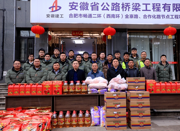2月11日,公司黨委副書記、總經(jīng)理錢申春到暢通二環(huán)(西南環(huán))項目看望慰問春節(jié)期間依然奮戰(zhàn)在一線的全體管理人員及勞務(wù)隊伍,并送上了水果、糧油等慰問品。