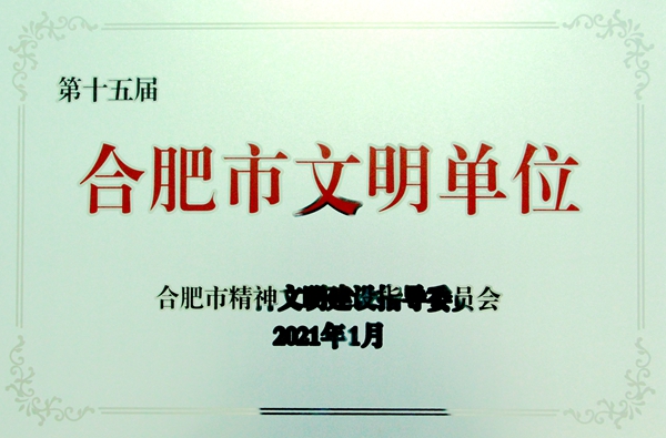 近日,合肥市精神文明建設指導委員會下發《關于命名第十五屆合肥市文明單位的通報》,公司被授予“第十五屆合肥市文明單位”。