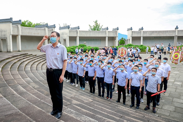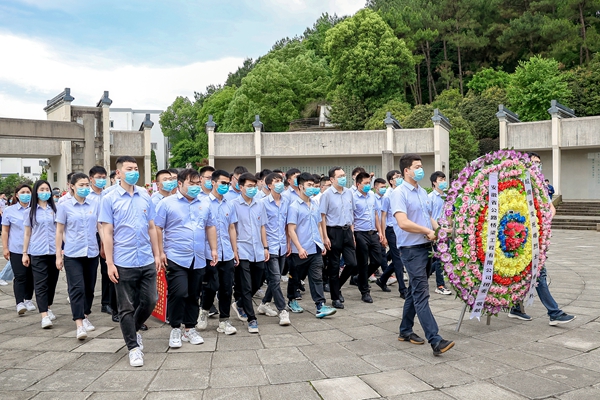 15日上午,團員青年們來到涇縣的皖南事變烈士陵園,向革命英烈敬獻花籃,并重溫入團誓詞,參觀了無名英雄烈士墓、主題廣場、主碑紀念廣場,追憶崢嶸歲月,緬懷革命先烈,近距離感受到偉大的新四軍精神。在云嶺新四軍軍部舊址紀念館,大家瞻仰當年新四軍戰士爭取民族獨立的歷史遺跡,“鐵軍”風范浮現眼前,進一步厚植了愛黨、愛國、愛社會主義的深刻情感。