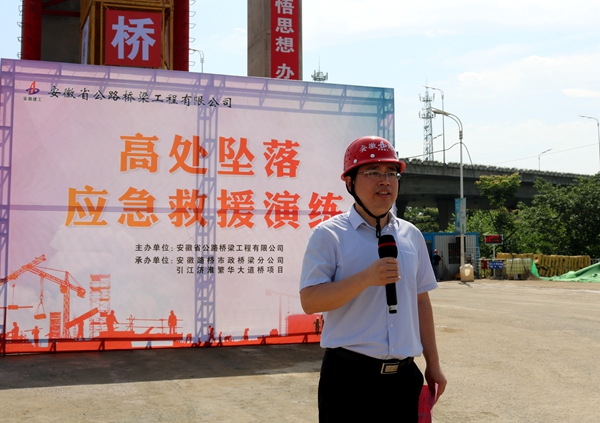 5月29日,公司在引江濟(jì)淮繁華大道項(xiàng)目舉行高處墜落事故應(yīng)急演練。公司領(lǐng)導(dǎo)班子及機(jī)關(guān)各部門負(fù)責(zé)人、分子公司領(lǐng)導(dǎo)班子成員、各項(xiàng)目經(jīng)理、繁華大道項(xiàng)目全體員工及工友代表參觀演練。