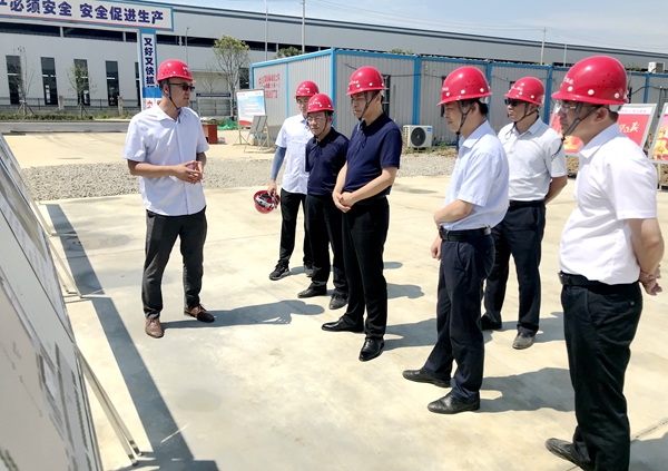 張俊一行聽取了項目負責人關于項目進展、設備安裝、材料加工等情況的匯報,實地查看了廠房、智能化生產(chǎn)線、新型環(huán)保拌合站等設備設施,對項目標準化建設、施工組織管理工作給予充分肯定。