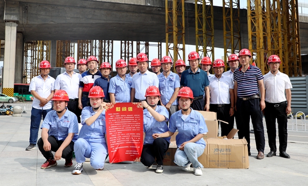 7月11日下午,中國(guó)海員建設(shè)工會(huì)分黨組成員、副主席武建光一行到暢通二環(huán)(西南環(huán))項(xiàng)目看望慰問(wèn)奮戰(zhàn)在項(xiàng)目一線(xiàn)的職工,并送來(lái)了綠豆、白糖、毛巾等防暑降溫物品。安徽省建設(shè)建材工會(huì)(文明辦)主任程德旺,公司黨委委員、副總經(jīng)理任杰,公司工會(huì)主席楊建強(qiáng)等陪同。