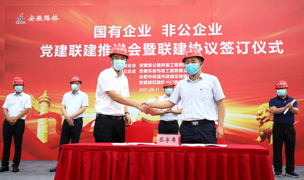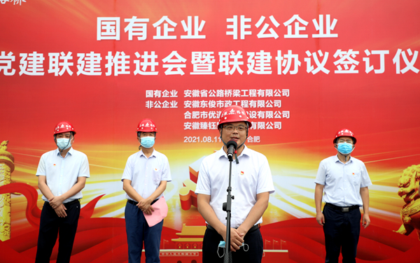 安徽東俊市政工程有限公司、合肥市優道市政建設有限公司黨組織代表在發言中表示,將全面履行合同承諾和黨建協議內容,在黨建聯建中汲取奮進力量。圍繞南二環項目建設,激勵引導全體黨員守初心,擔使命,帶領全體員工立足崗位提高工作效能,爭取更高質量更高標準完成工程建設任務。