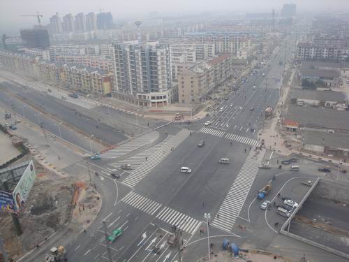 新蚌埠路面層瀝青攤鋪工作最大的困難在于交通半封閉施工。項目部采用了有效的安全措施,合理疏導交通,嚴格要求人人佩戴安全防護用品,確保生產的安全順利。項目部為保證施工進度,一方面確保瀝青的及時供應,現場所有瀝青幾乎同時到場侯用;另一方面調動瀝青攤鋪機兩臺、壓路機五臺參與施工。項目部在施工完瀝青面層后,緊接著組織地面交通標志標線的繪制工作,縮減了交通的半封閉時間,減輕了交通壓力。