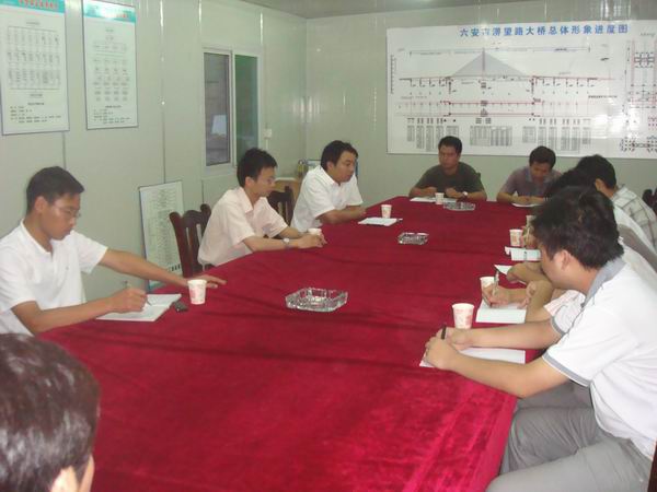 針對北岸引橋箱梁砼澆筑后,對成型構件出現的問題,由全體技術人員先找原因討論解決辦法,隨后,崔總對所提出問題逐一進行了原因分析,提出了解決的辦法。大家感到這種有針對性地培訓,接受的快,收效很大。最后,項目經理江仲明要求在當前工程沖刺關鍵時刻,所有技術人員要切實增強質量意識,強化質量工作責任,加強質量考核工作,并強調各部門、各作業隊要對檢查出的質量問題嚴肅處理,認真落實整改。