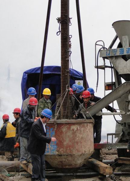 11月10日上午10時(shí),我項(xiàng)目部所屬的皂角樹(shù)特大橋(總長(zhǎng)1506.08米)60號(hào)橋墩2號(hào)樁基正式澆注。該樁基樁長(zhǎng)21米,樁徑1.5米,所用混凝土為C30水下混凝土,這是宜巴高速第二高監(jiān)辦所轄5個(gè)標(biāo)段內(nèi)第一根開(kāi)始澆注的樁基。宜巴高速指揮部、第二代表處及高監(jiān)辦的領(lǐng)導(dǎo)對(duì)此高度關(guān)注,在我標(biāo)段橋梁一工區(qū)見(jiàn)證了樁基澆注全過(guò)程。在澆注施工前項(xiàng)目部也做了充分的準(zhǔn)備工作,所有工序均是高標(biāo)準(zhǔn),嚴(yán)要求,嚴(yán)格按照規(guī)范施工。“第一樁”的成功澆注在湖北充分展示了安徽路橋人科學(xué)嚴(yán)謹(jǐn)?shù)氖┕ぞ瘛?SPAN lang=EN-US>