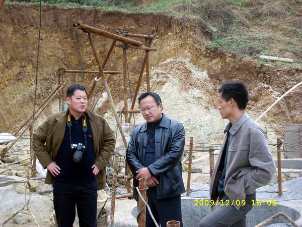 9日下午,孫總陸總一行稍做休息之后,便在我部項目經理劉曉晗、財務經理李強等人員的陪同下,對我部的巖子腳大橋4號、5號主橋墩挖孔樁處、雨壩隧道、拌和站料場、標尾路基挖土方處做了認真的檢查。孫總對我部開工以來的進展速度和取得的成績給予肯定。當前我項目4號墩挖孔樁16根樁基已完成14根,剩余2根也即將成孔;5號墩挖孔樁也完成一半以上;隧道便道的修建速度和路基填方速度都較快。孫總也就我部的不足之處提出要求,要求我部應更加主動積極地解決地方問題,加快橋梁上部施工隊伍的選擇,保證橋梁施工的連續性。在施工過程中要確保施工安全,特別是隧道進洞及石方爆破,要有專項安全方案,在確保施工質量的同時要做好文明施工,展示路橋風采。